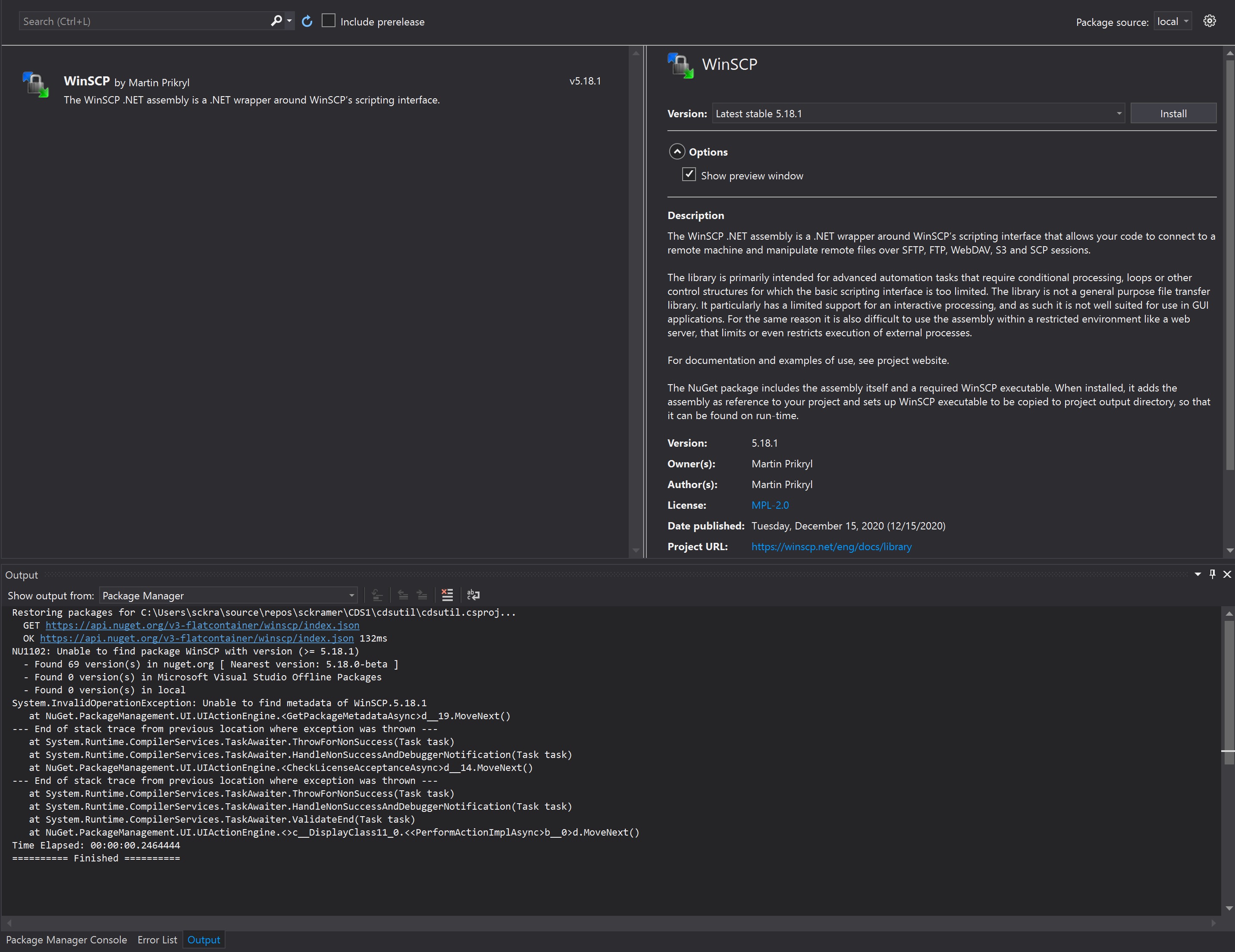 WinSCP.SessionLocalException: The winscp.exe executable was not found at location of the assembly WinSCPnet (), nor the entry assembly Xxxxx (), nor in an installation path. You may use Session.ExecutablePath property to explicitly set path to winscp. exe.