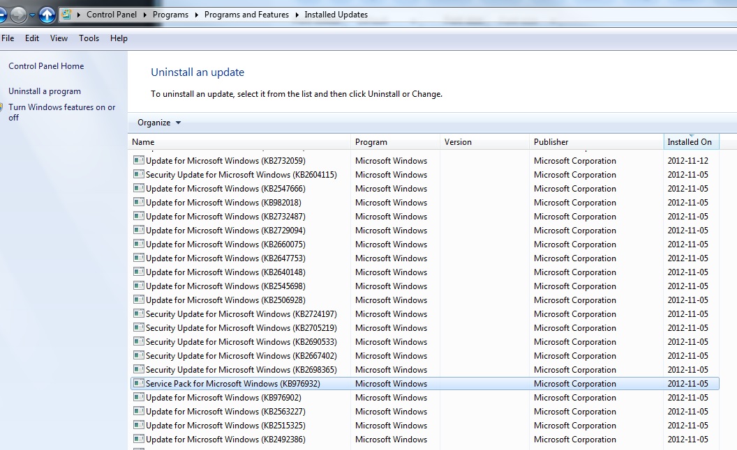 Windows 7 Service Pack 1 for x64-based Systems (KB976932)