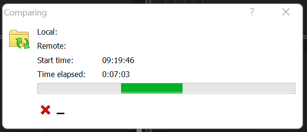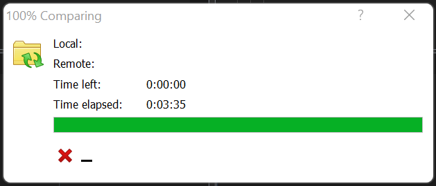 It was running 3:35 minutes. But after ~2 minutes its showed 100% with full bar und 0 time left. There was still many folders and files to compare, after its showed long time 100%.