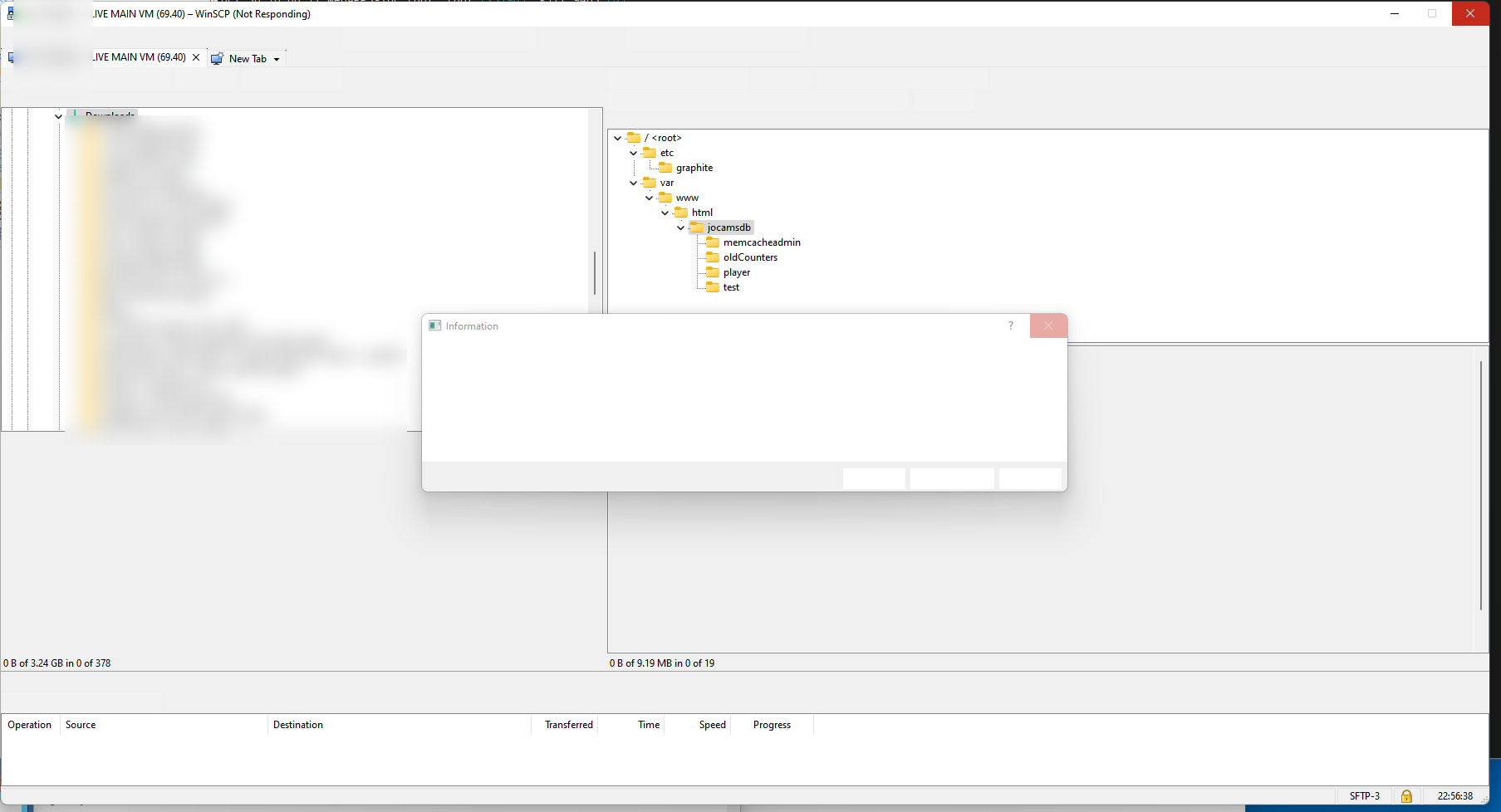 • NO WinSCP log file attached (would it help if I enabled session logging, and waited for this GUI issue/lockup to occur? I'm assuming no, it will not log anything, but if so I will do that)
