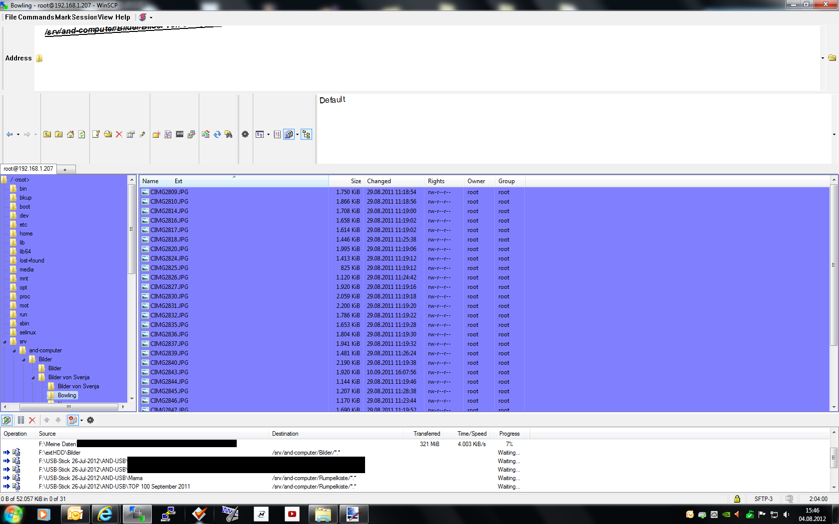 I transfer a large amount of data (almost my whole HDD^^) to my server in my LAN. At the same time I tried to compress a DVD-ISO with 7-Zip, just to find out, how strong it copuld be compressed. Point is, my Intel i5 CPU was 100% busy and 7-Zip used 7 GB of my 8 GB RAM. Unfortunately, I had to kill explorer.exe, because I could not browse through my directories an more to drag more content to WinSCP.