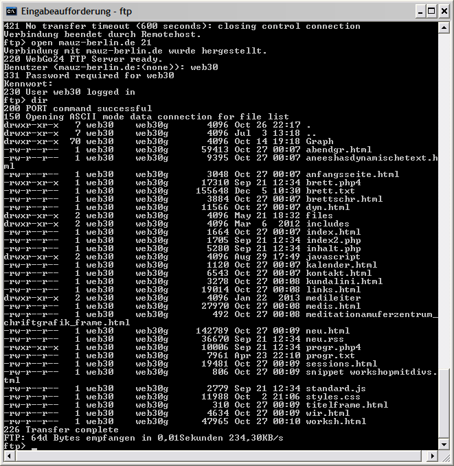 Description: Screenshot of command line ftp dir