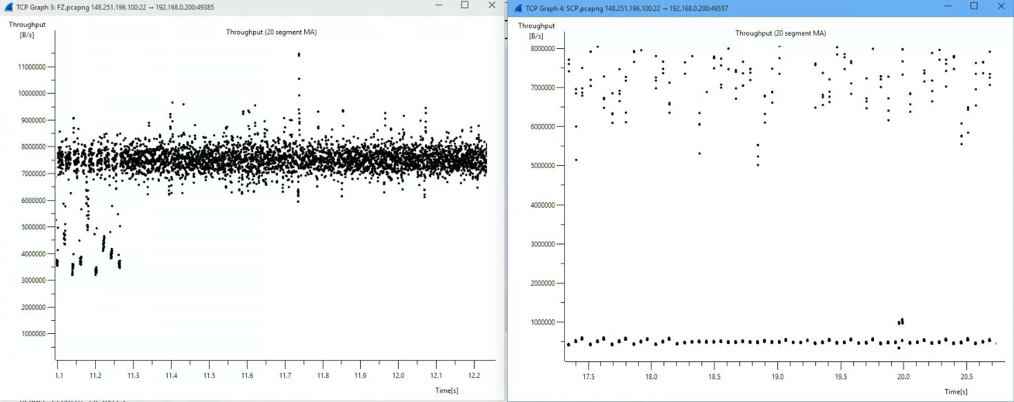 I'm comparing the download speed of WinSCP (both script and client) vs FileZilla.