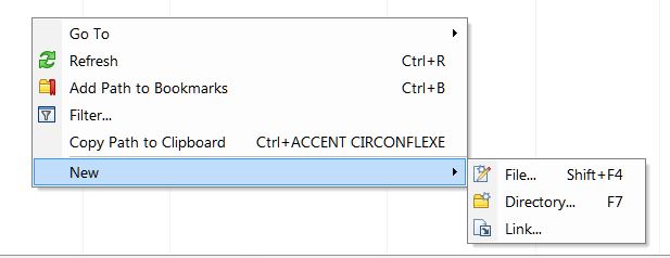 When I make a right click on a folder under Windows (local), I cannot see the option "New" like I can see under Linux (remote), I only have the choice "Create Directory..." so to create a file, I have to use the "Files menu".