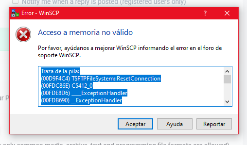 Nieprawidłowy dostęp do pamięci - TSFTPFileSystem::ResetConnection