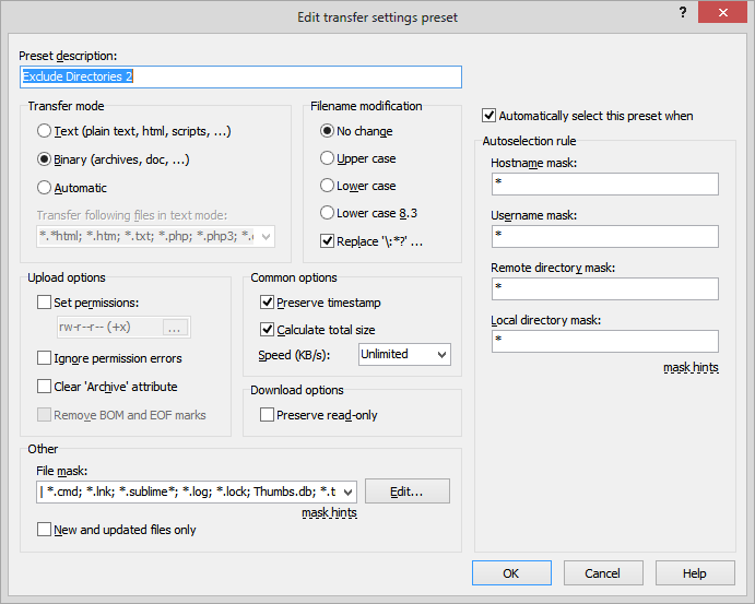 When using the GUI, I had set a certain default File masks with preset to be selected for all cases that got applied every time I chose to keep files up to date.