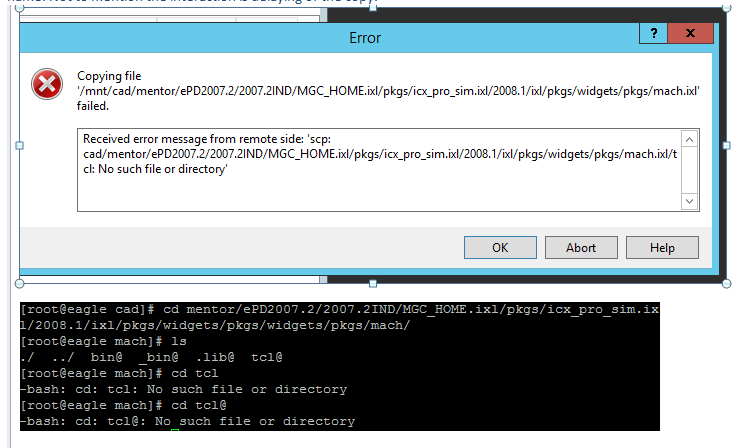 Description: Screenshot showing failed then looking in the dir you see the file.