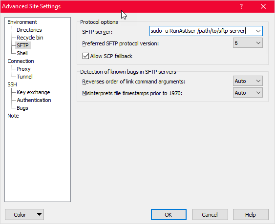 • Elevate sftp-server to root permission.