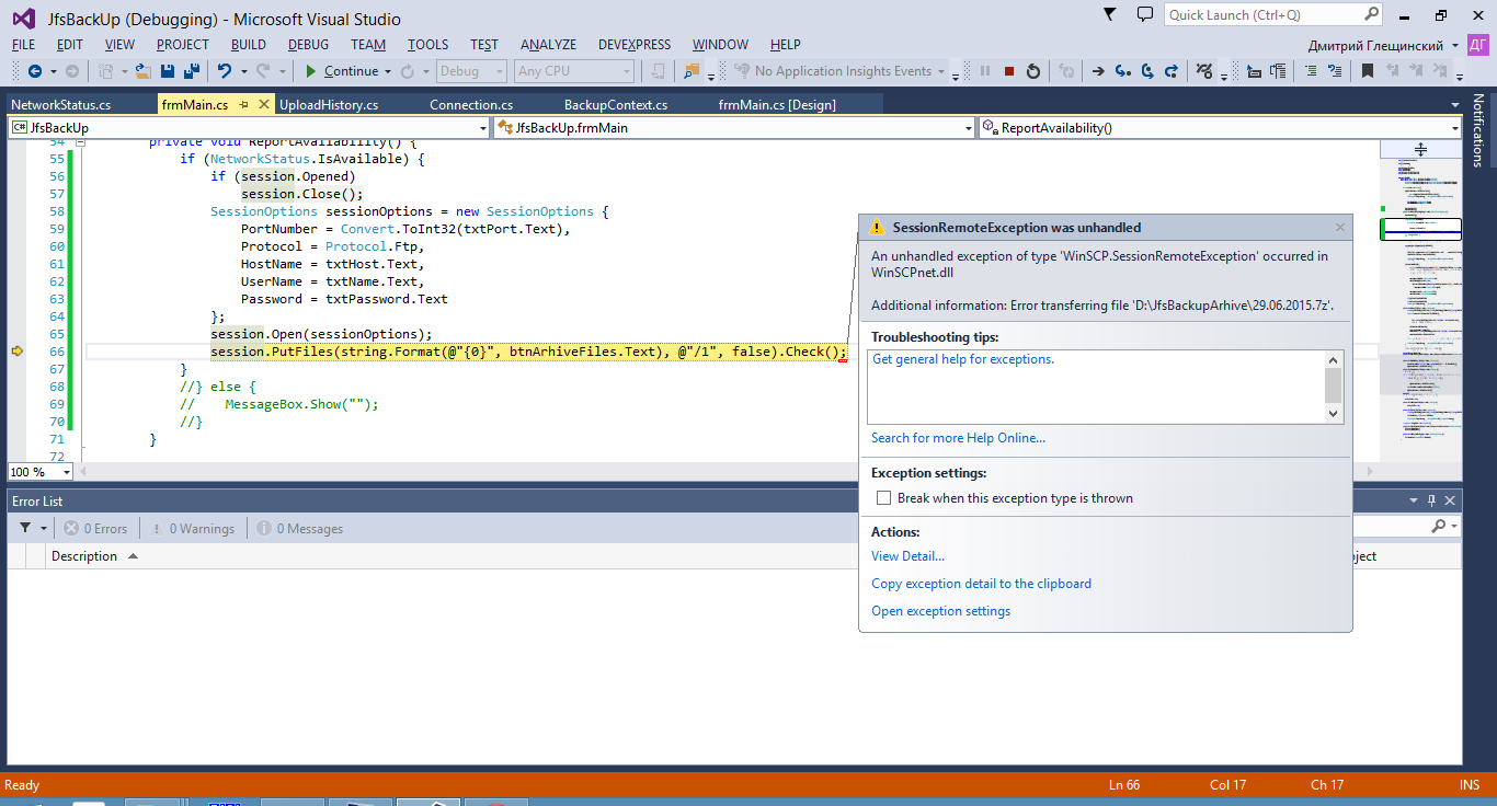 Hello, How can I continue to upload files to ftp after disconnection? I'm try Close Open session but it's doesn't work! Help plaease!