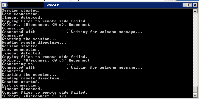 I would like to abort this reconnection automatically or after some time so I know this has failed. Now winscp is just retrying this endlessly. Because I'm waiting on the result everything else is waiting until someone comes along and chooses abort.