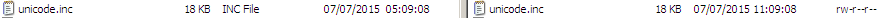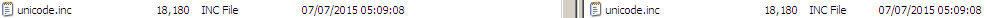 So, for the file in question (unicode.inc, which appears in WinSCP as listed for transfer as being newer when it isn't, it's the same file):