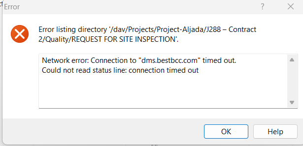 Network error: Connection to "xxx.yyy.net" timed out.