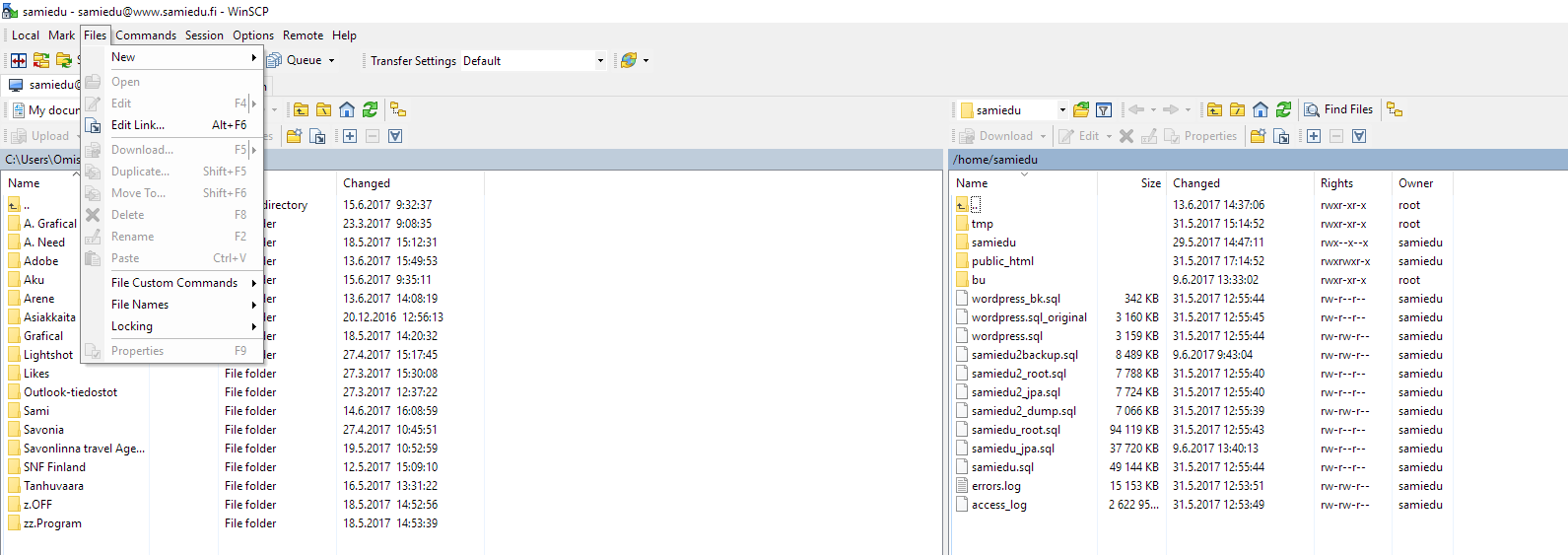 Properties are greyed out. I'm using SFTP and running the latest version of Winscp to date.