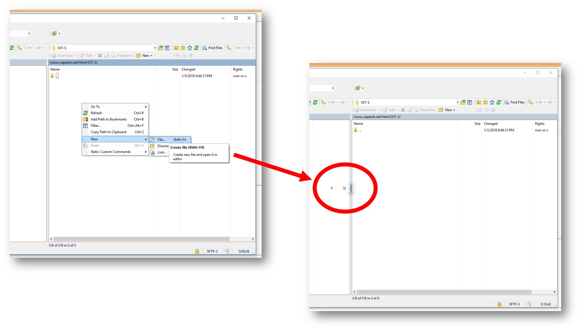 Can not create NEW file or directory via WinSCP