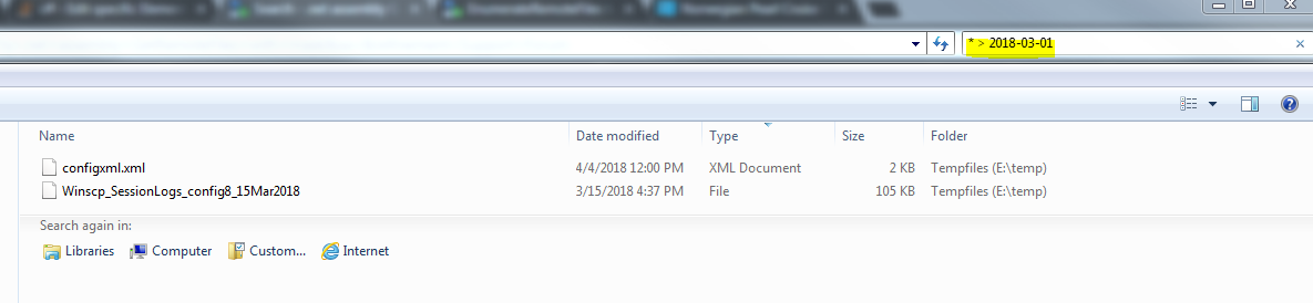 Time constraints are not supported in Session.EnumerateRemoteFiles.
