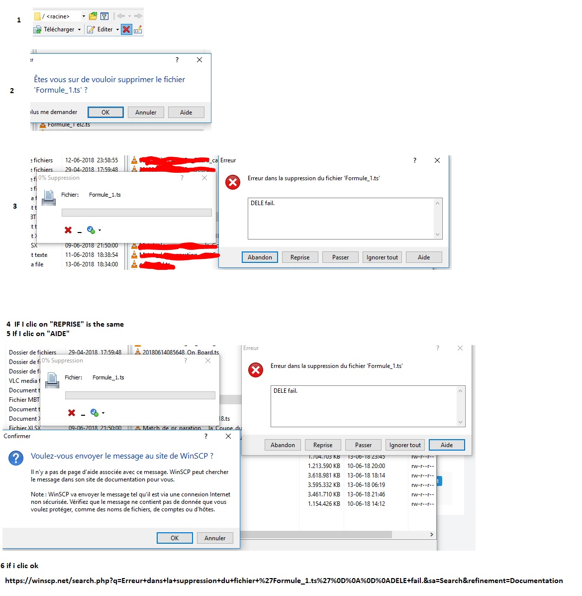 OK, sorry, I've overlooked that. But I've primarily asked for "screenshot of "Telecharger et Supprimer" box after you click OK on the "Rechercher un dossier" box".