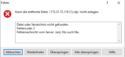 if I want to upload a file that is smaller than 100 KB to an SFTP server, I get the following error message. (see attached file)