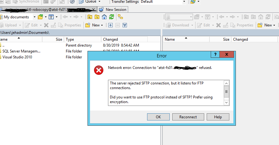 I have two servers that are in different domains and I'm trying to setup WinSCP between both machines. From my first machine (data01) I'm trying to connect to the other server (atst-fs01) and I get the error about The server rejected SFTP. I checked the openssh port and all looks good. I'm using an account on the same domain as the second server (atst-fs01) but same results. Please let me know what I'm doing wrong. The version of WinSCP is 5.15.5.