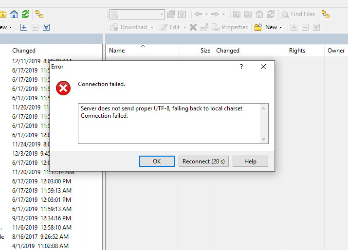 "server does not send proper UTF-8,falling back to local charset connection failed"
