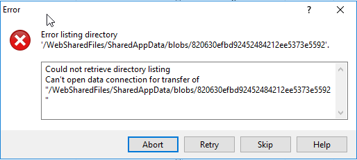 I am using the feature to mirror two directories using WinSCP and this works great. But, one of the servers I am using is generating some kind of timeout, saying 'Could not retrieve directory listing'. I get the same message using the GUI, but as you see in the attached image, I can press 'Retry', and it will continue from where it left off.