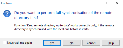 • If I click "No" it does not synchronize anything, and if I change a file it starts syncing the whole folder
