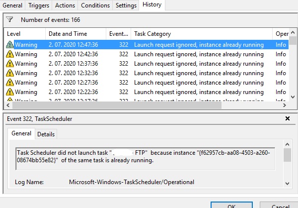 If (manually) delete file on remote FTP and run TaskScheduler then copy file on FTP. But only first time !!! All next task I get error (attachment FTP.jpg)