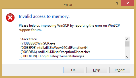 Invalid access to memory - TLoginDialog::GenerateImages