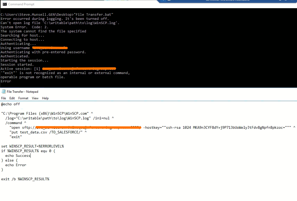 I figured it out, I don't know why but apparently it didn't transfer the file because I didn't give it a real path to write a log file to, not sure what one has to do with the other but that fixed it.