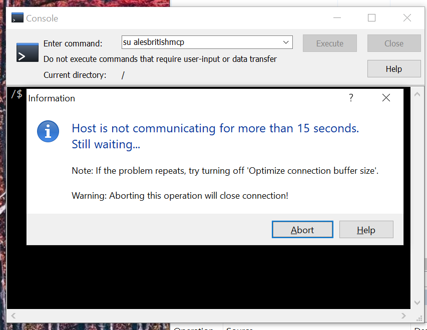 With shell access for that user disabled the console correctly tells me that shell isn't allowed. If it is allowed it hangs. Screenshot attached.