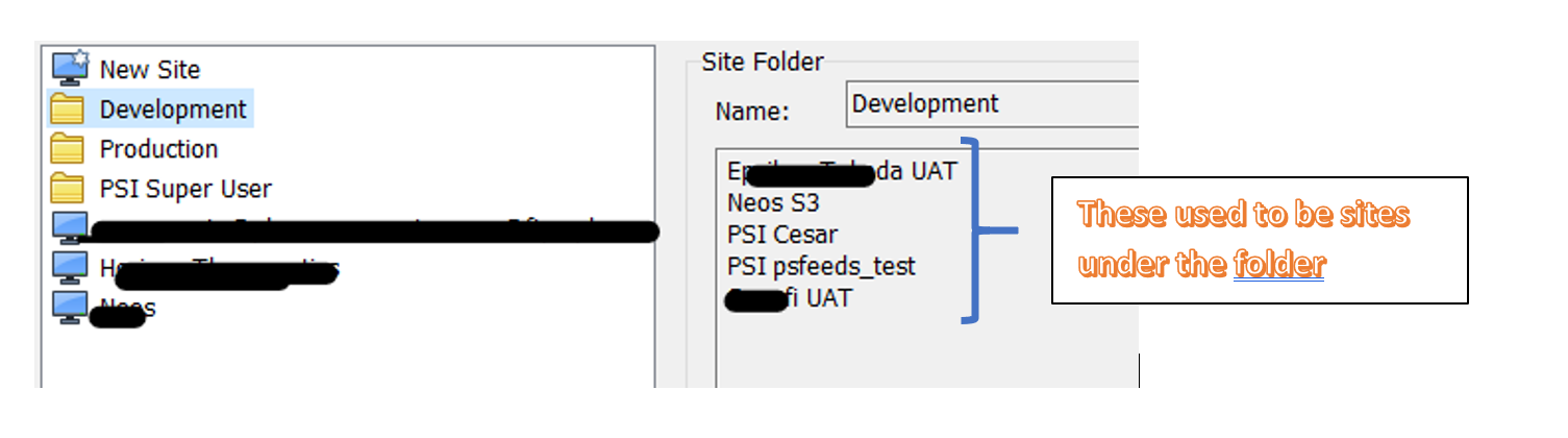 I decided to re-install WinSCP. After installing, I imported the configuration. Most sites were lost. The 13 sites that were lost were in a folder.