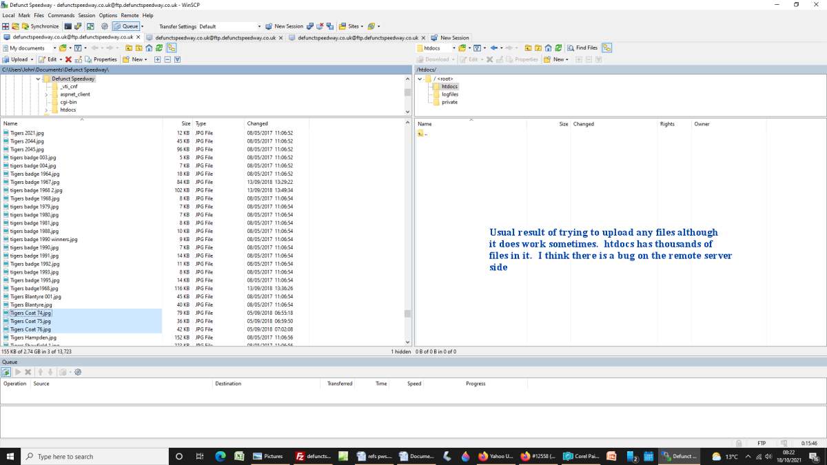 Re: Files fail to upload. The server shows a folder with 2 dots after it