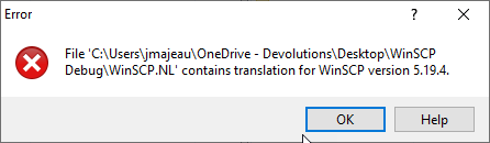 Essentially, when WinSCP's language is set to dutch, it returns an error when we're trying launch it through our software (this does not present itself when WinSCP's language is set to English).
