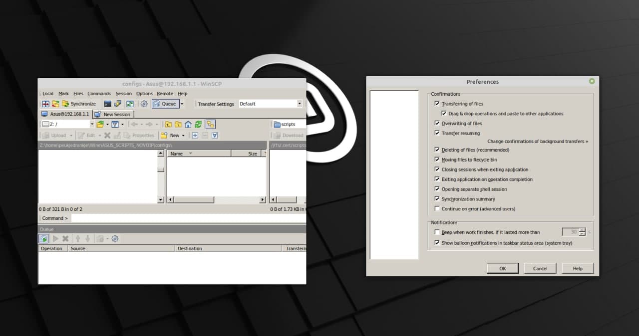 I am a horrible Linux user and WinsCP is opened on Wine.