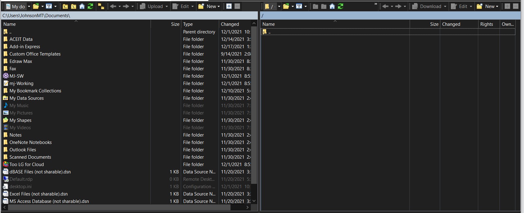 Hi, I've been using WinSCP to synchronize files, via FTP, between my PC and NAS (Network Attached Storage) for several years, however, I recently updated my routers firmware, and I can no longer see the directories of the NAS, i.e., the NAS shows as an empty root directory (see the right-hand pane of the attached screenshot). Any ideas as to what is wrong or how to fix?