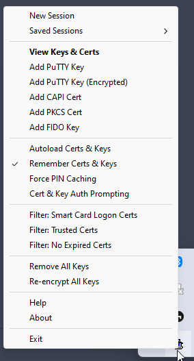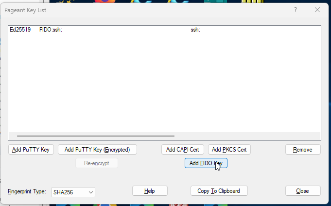 First you have to save your FIDO session in PuTTY-CAC (only have to do this one time)