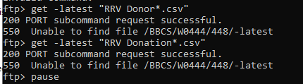 get -neweronly "/BBCS/W0444/448/*.CSV") or another attempt using -latest in place of -neweronly, and it treats those as file names indicating it cannot locate the files. See attached.