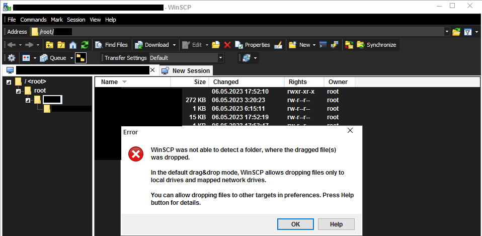 Updated from WinSCP-5.19.6-Portable to the latest version of WinSCP-5.21.8-Portable at the time of publication. And the problems started, I switched the interface to <Explorer >, re-entered and went problems with drag &drop when trying to throw over the aisles of the application gives an error! Error: WinSCP could not detect the folder where the files were dragged. If you click OK and move it again, then there is no error and the file has moved. In fact, this error occurs every time you start. But if the interface is returned to <Commander>, then there is no such error when dragging to the desktop, outside the application! In the old version, there is no such error. Tell me if it can be fixed?