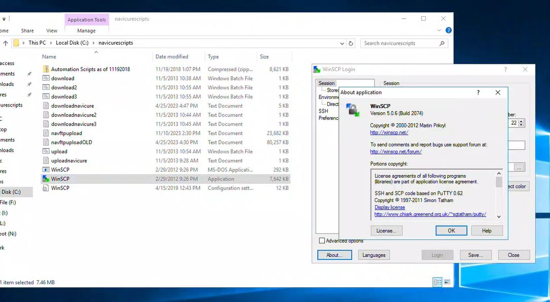 I have a server that runs a set of automated SFTP scripts to upload and download files to Waystar. Waystar is upgrading their protocol for SFTP to newer algorithms and public keys on November 11. Our current scripts are running a WinSCP executable in the script folder that's Version 5.0.6 (see attachment). This version fails their test login for the newer algorithms. However, on this same server, there is a WinSCP Version 6.1.1 installed. This version successfully connects using the newer algorithms (see attachment).