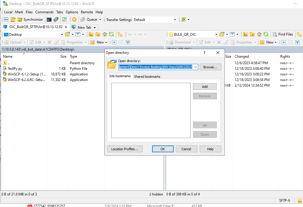Re: Facing issue while pasting the path in Open Directory but documents are not uploaded in WinSCP