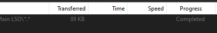 OPERATION SOURCE DESTINATION TRANSFERED TIME/SPEED PROGRESS Download /test.txt C:\test.txt 5,000 B 0:00:32@157B/s Completed Download /more.txt C:\more.txt --- --- FAILED